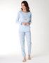 Avvolgiti in dolce comfort con il nostro pigiama lungo donna in jersey azzurro polvere. Realizzato al 100% in cotone, offre una sensazione leggera e traspirante. Il girocollo aggiunge un tocco femminile, mentre la casacca con stampa piazzata e il pantalone con stampa allover creano un'accattivante armonia visiva. Indossa questo pigiama per un mix irresistibile di stile e comodità, perfetto per notti rilassate. Scopri la bellezza della nostra linea jersey azzurro polvere per un sonno avvolgente e alla moda.