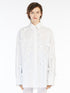 Camicia dalla linea maschile, con fit oversize, realizzata in popeline di puro cotone. Tutto il capo è decorato da rose tridimensionali ricamate a mano, realizzate con lo stesso tessuto. Il capo è completato da allacciatura nascosta, polso alto con doppio bottone e fondo dritto.