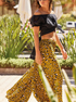 I pantaloni da spiaggia Palazzo del brand italiano Iconique sono stampati con un sottile motivo a stampa animalier cachi. La vita elasticizzata e il design della gamba ampia li rendono un accessorio estivo essenziale.